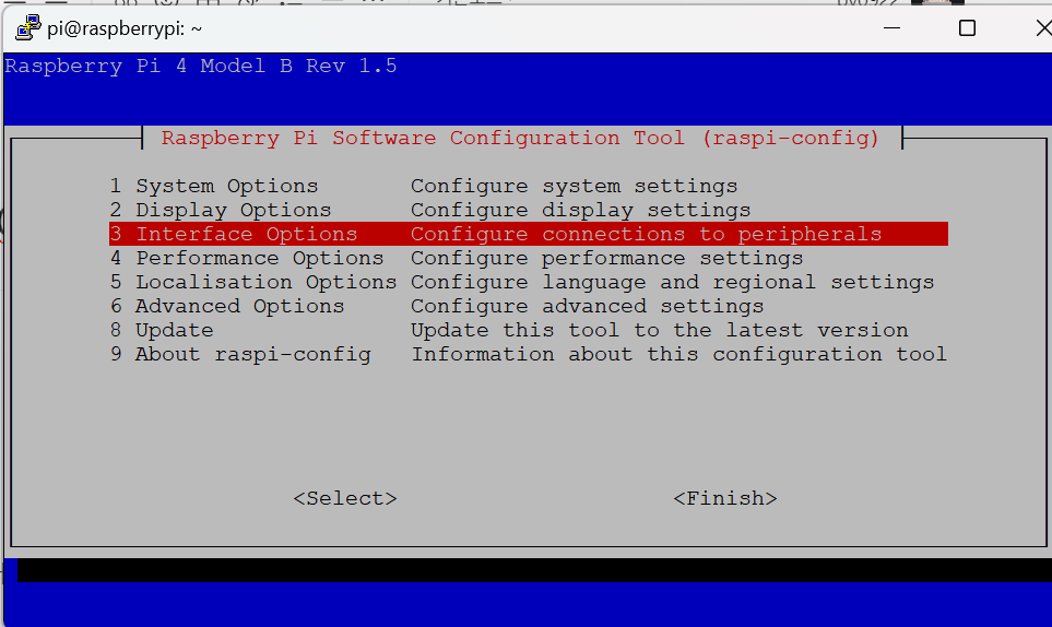sudo raspi-config 명령어를 입력하여 세부 설정을 해준다.
