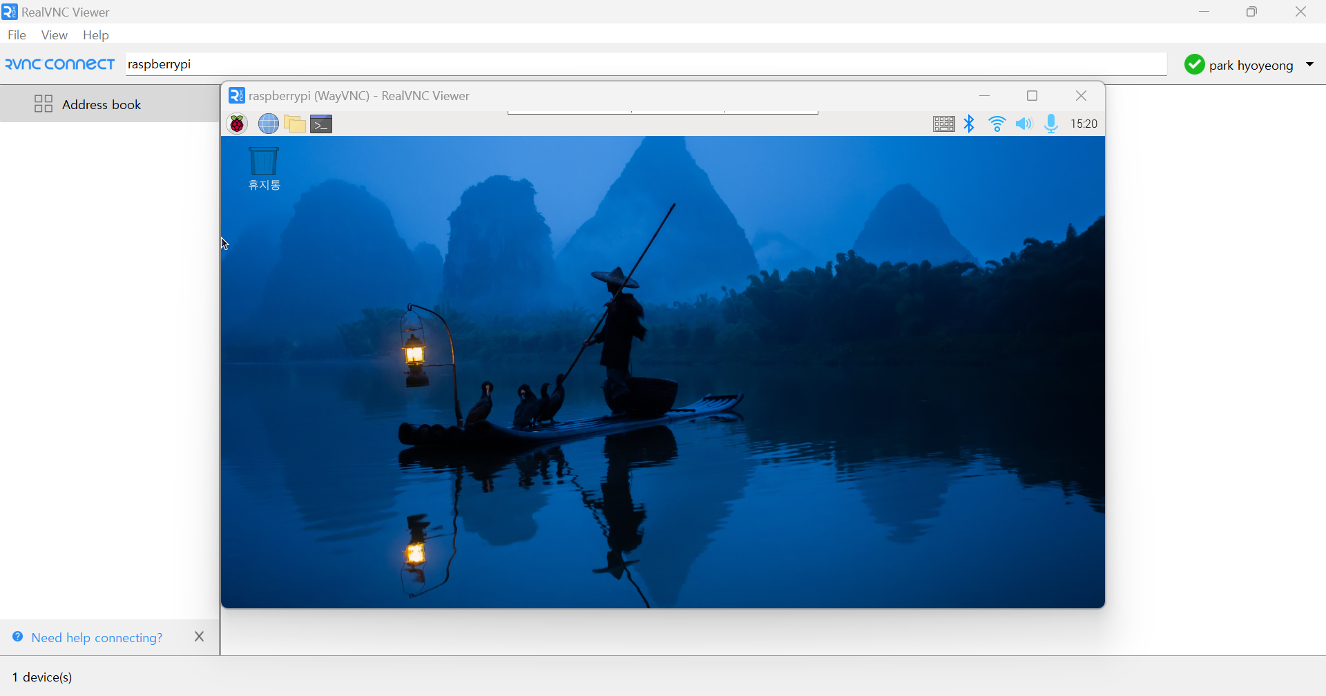 RealVNC Viewer을 연다음, 검색창에 rasberrypi를 검색하면 나온다.