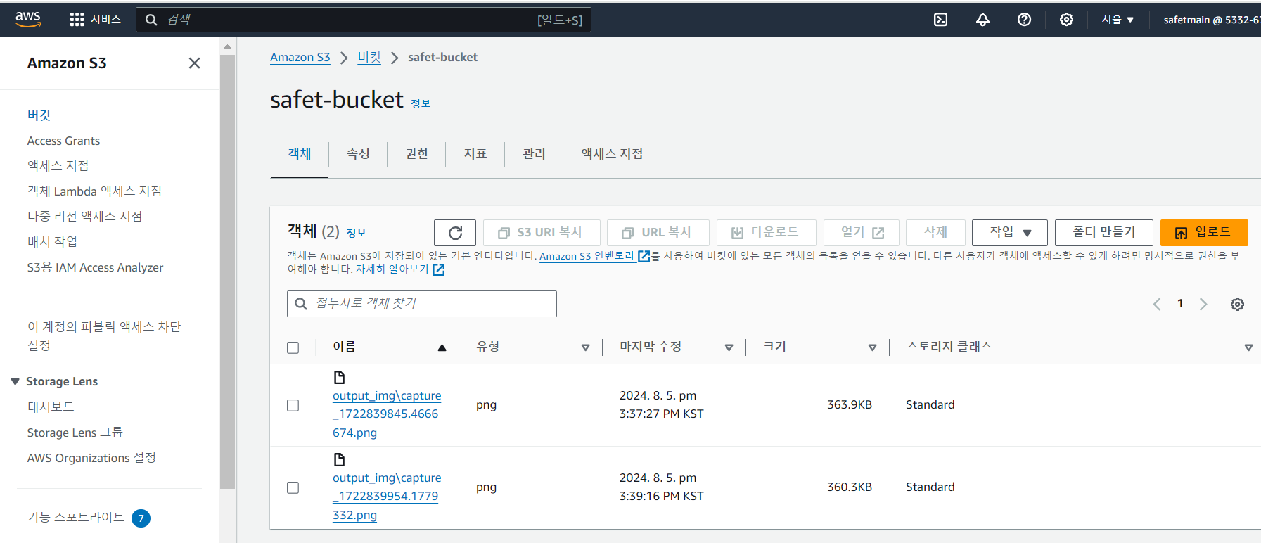 그래서 아래 aws s3에 등록된 파일을 보면 2개의 파일만 저장되어 있는 것을 확인할 수 있다.