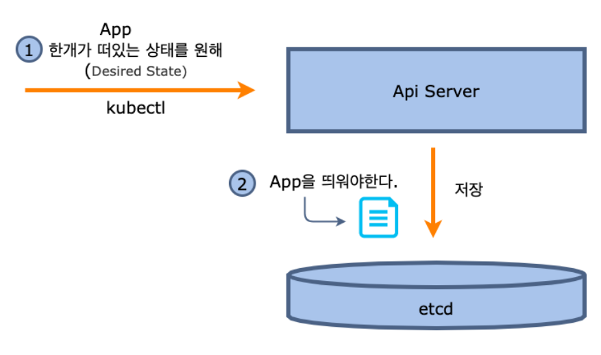 1.2 ) 보낸 요청을 Api Server가 받게 되고 etcd에 어떤 상태가 되어야 하는지를 저장한다.