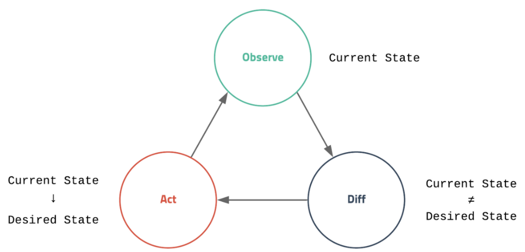 기본적으로 쿠버네티스는 원하는 상태(Desired State)와 현재 상태(Current State)를 비교한다.