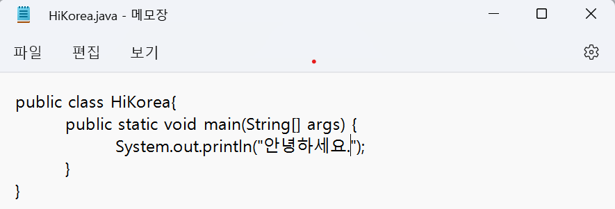 JAVA로 '안녕하세요'를 출력할 목적으로 HiKrea라는 class를 만들었는데요.